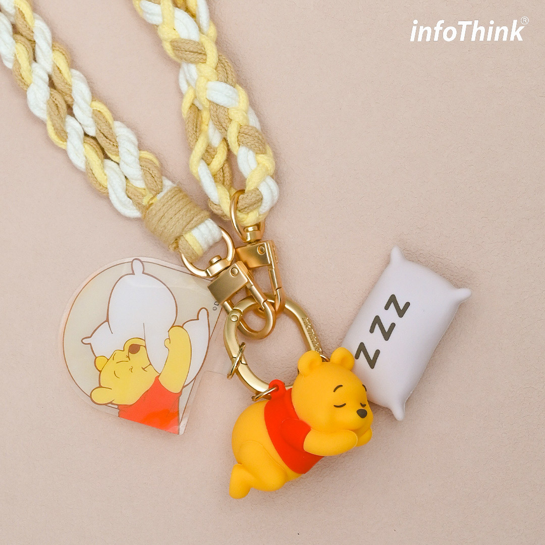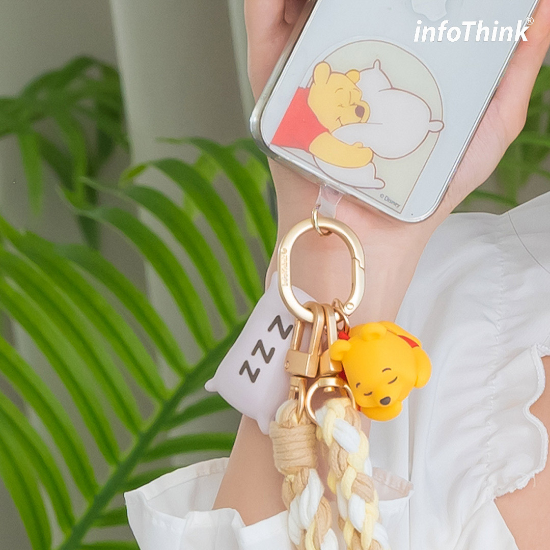 • 造型五金扣環可配掛隨身耳機、證件套等小物